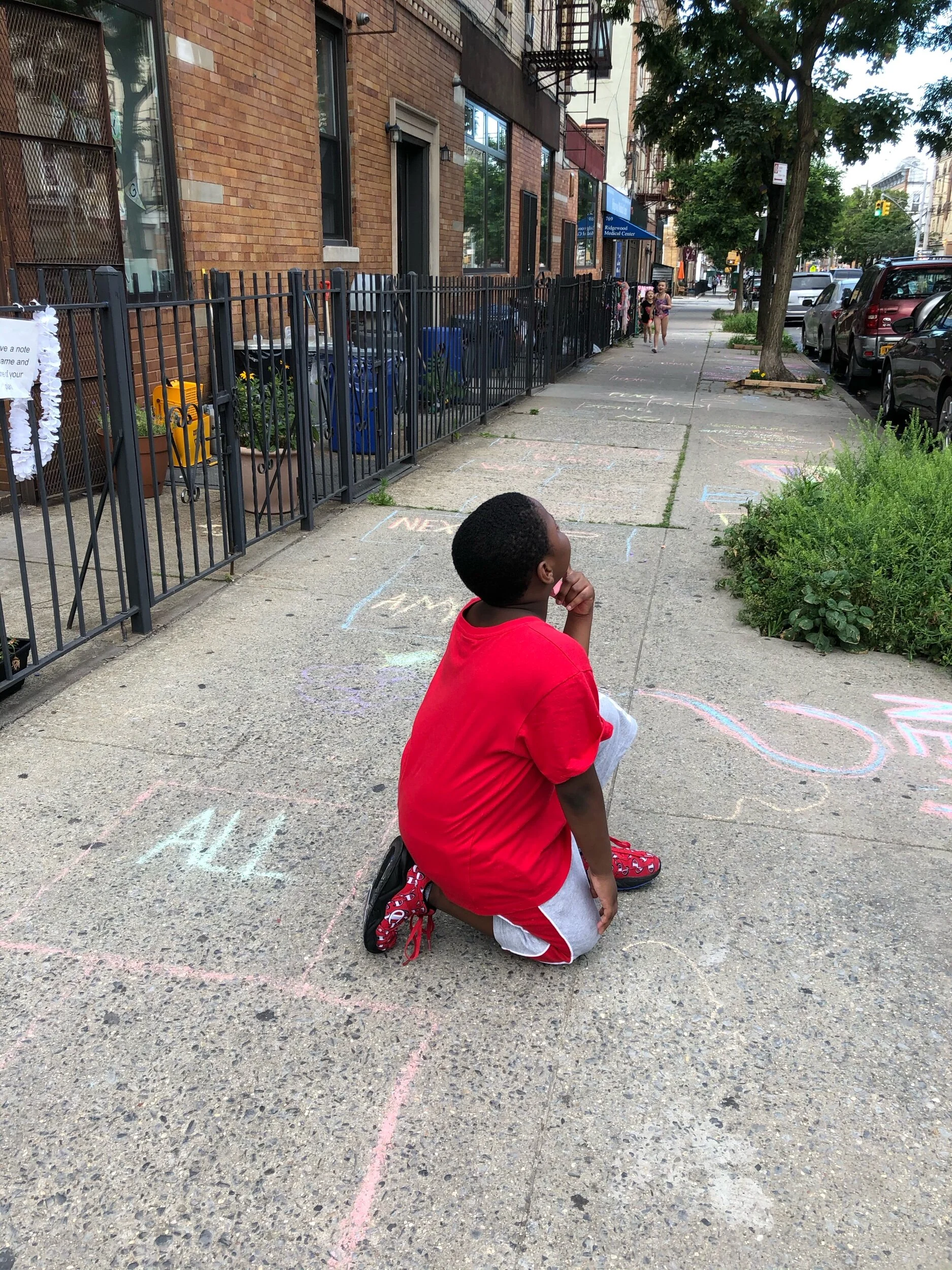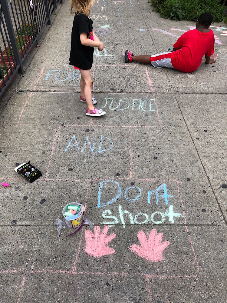 As a means of bringing young people into the national conversation on race, social justice hopscotch was devised in the context of a larger work, entitled Act / Remember. This site - specific installation will premiere June 20th, 2020 as part of the National Arts Drive. Participants will be invited to engage actively and creatively, in a social justice - themed hopscotch board that serves as and educational tool. Act / Remember is bringing attention to racially charged police violence through chalk drawn text, illustrations, and projected film. This work is suitable for all ages. It is crucial to bring young people into this conversation now, in ways that are age appropriate, factual, and open - ended. Through creative encouragement, any and all individuals are invited to process, ponder, and participate in the work, thus the conversation at large. Giving young people this space to be welcomed and heard builds confidence and cultivates a genuine interest in learning.
