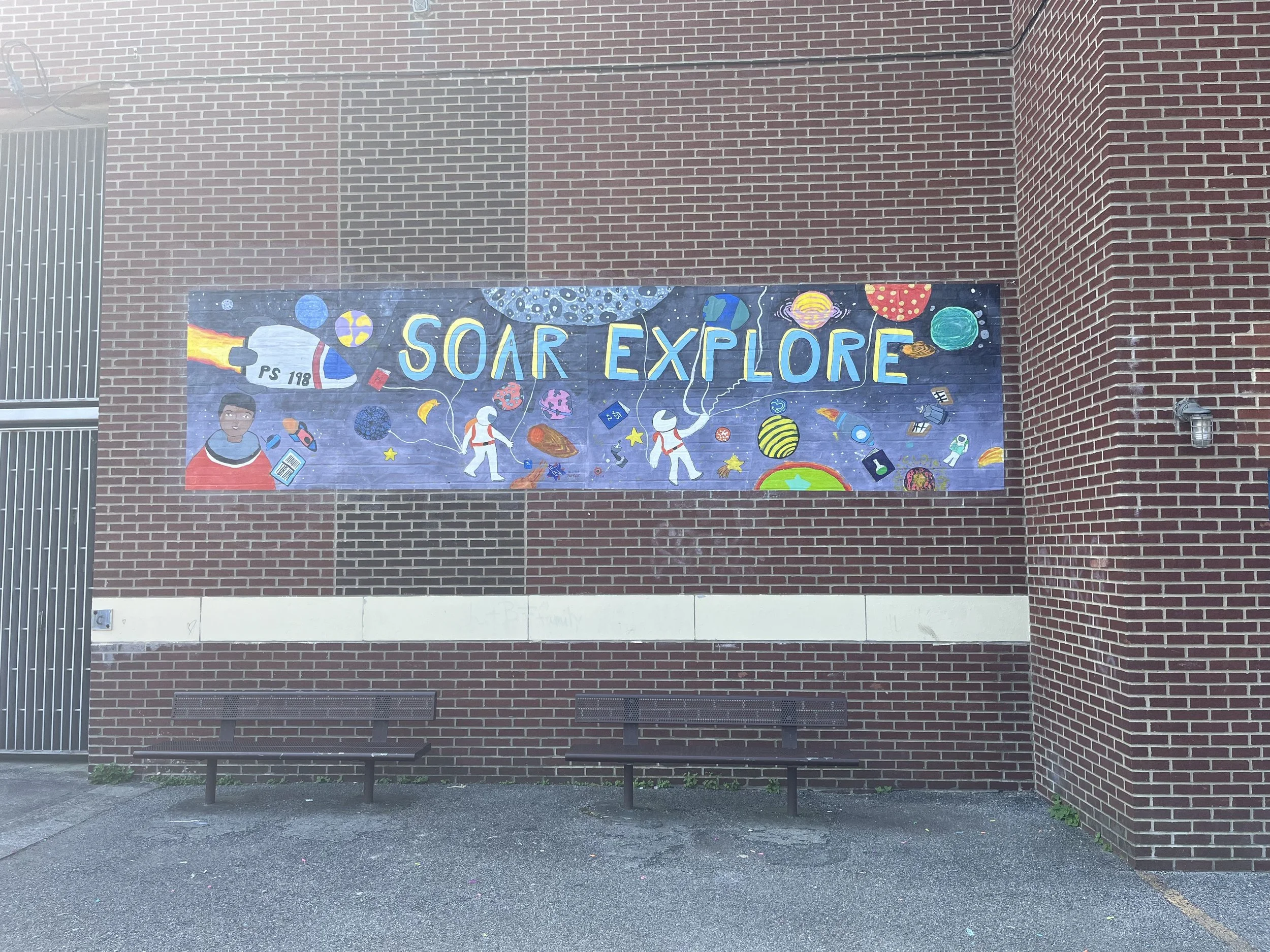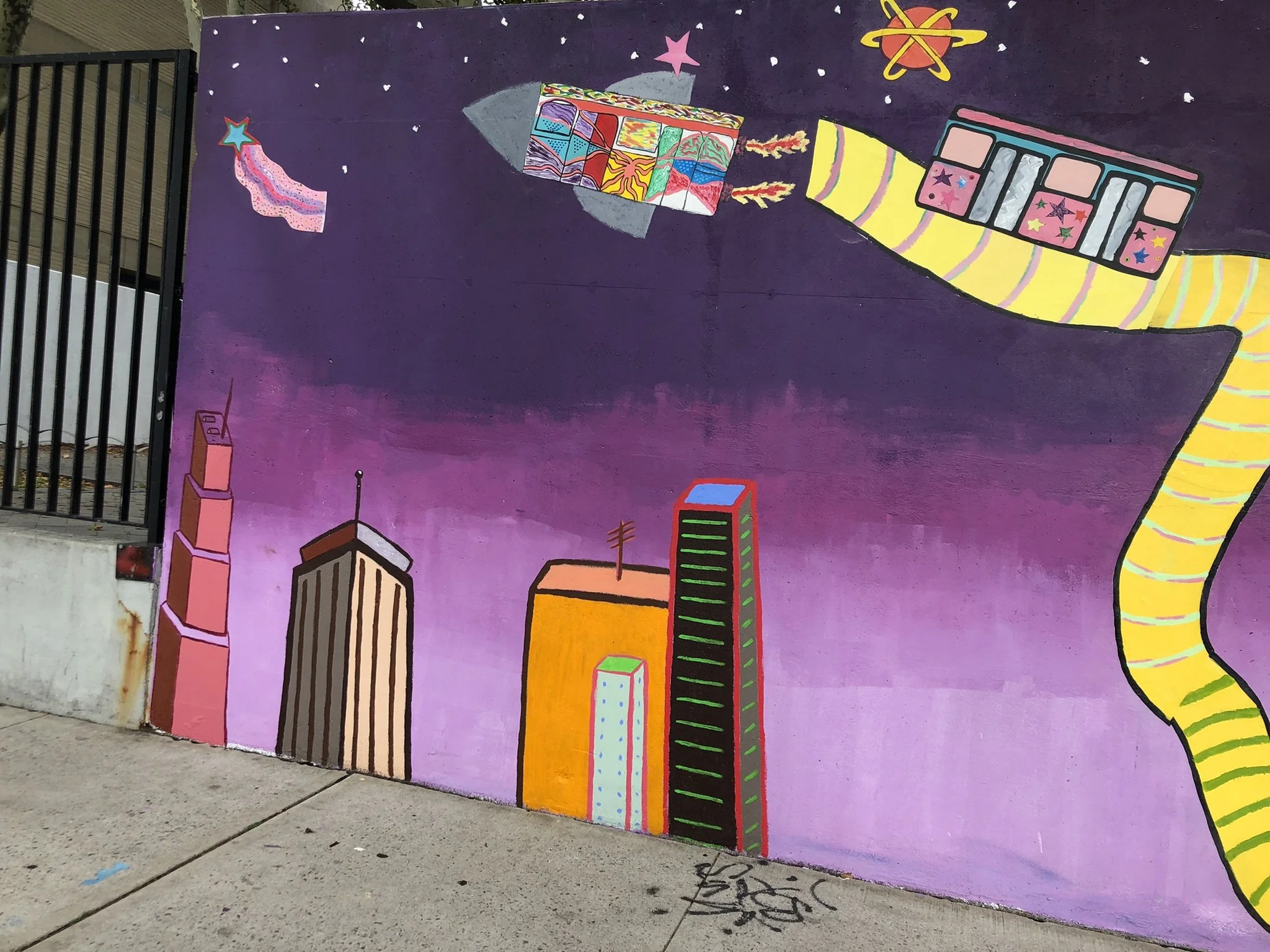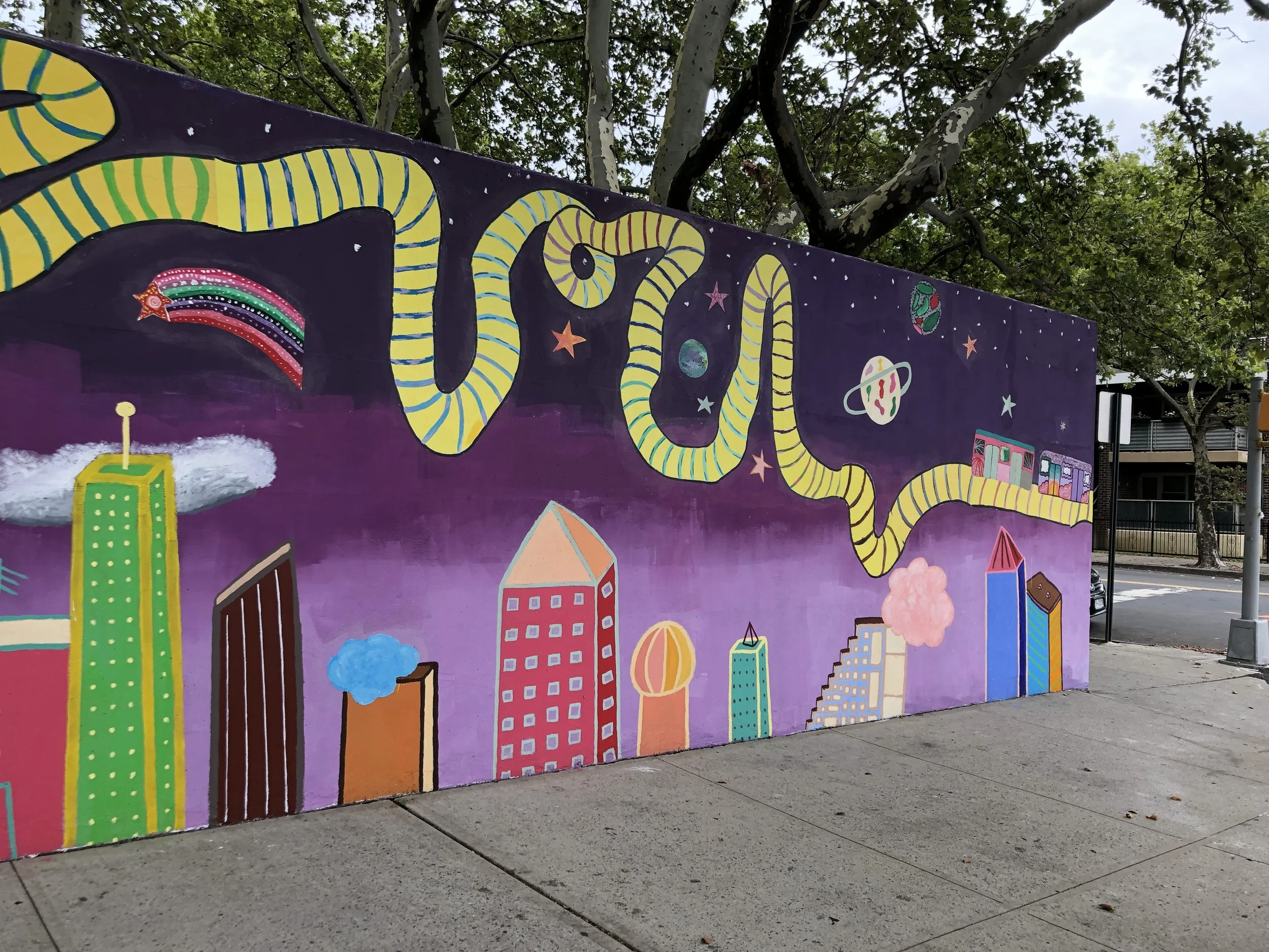 Outdoor acrylic mural in East New York, Brooklyn, facing the public sidewalk. 2022
